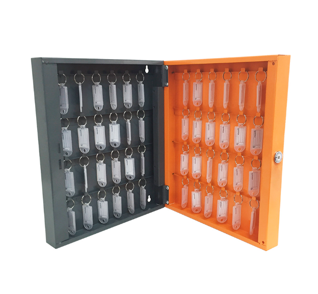 Capacidade para 48 chaves, cada uma acompanhada de chaveiro plástico individual e etiqueta para fácil identificação;