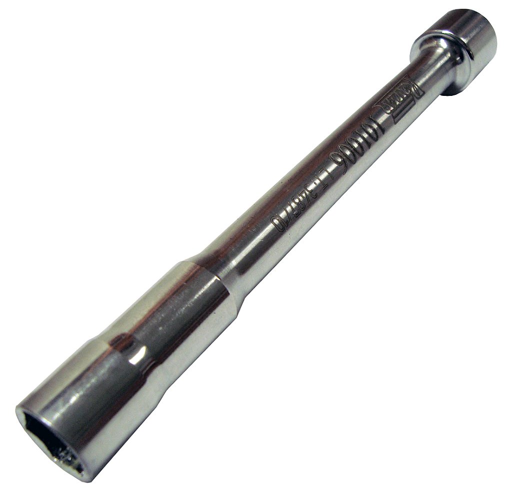Chave de vela de 14 mm (sextavada), com encaixe de 1/2" e comprimento de 190 mm, para os motores 1.0 16V (D4D) (veículos Renault, Peugeot 206 e Nissan March), Ford 1.0 12V 3 cils. (Ka e New Fiesta) e Nissan 1.0 12V 3 cils. e 1.6 / 1.8 / 2.0 16V (linha Nissan).