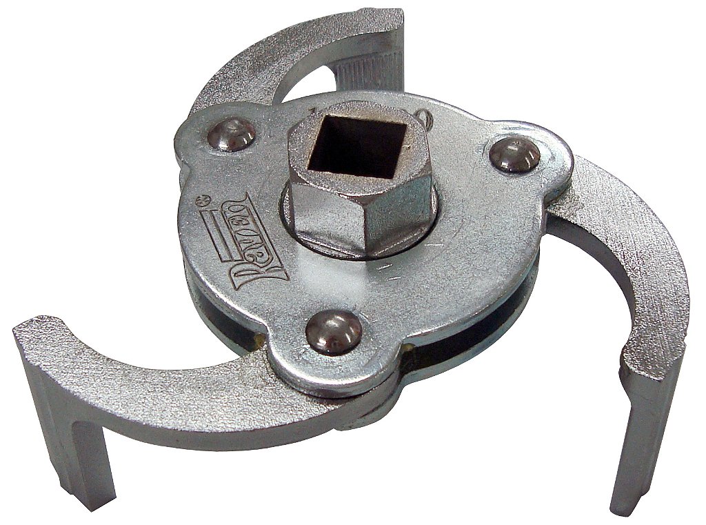 Saca filtro de óleo com abertura de 70 a 100 mm. Possui 3 garras, encaixe quadrado de 1/2" e sextavado externo de 22 mm.